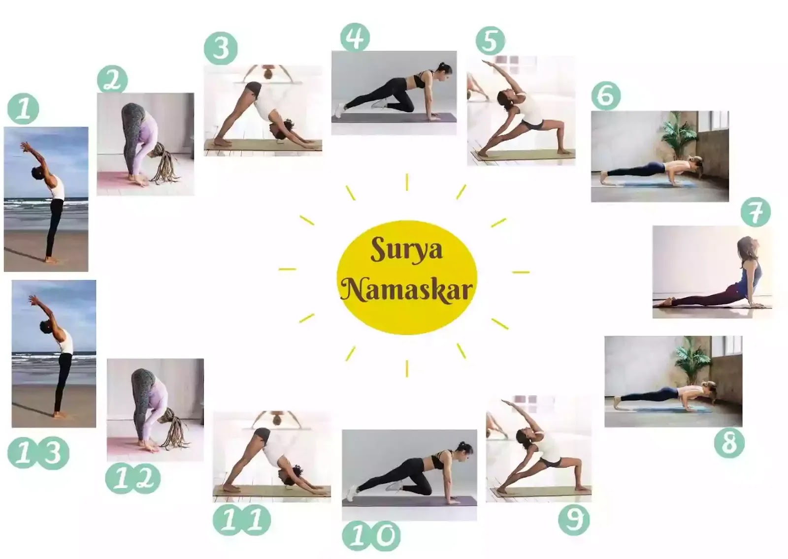 - Surya Namaskar causes proper blood circulation throughout the body. It ensures detoxification, prevents wrinkles, early aging, and returns the natural glow of your skin.